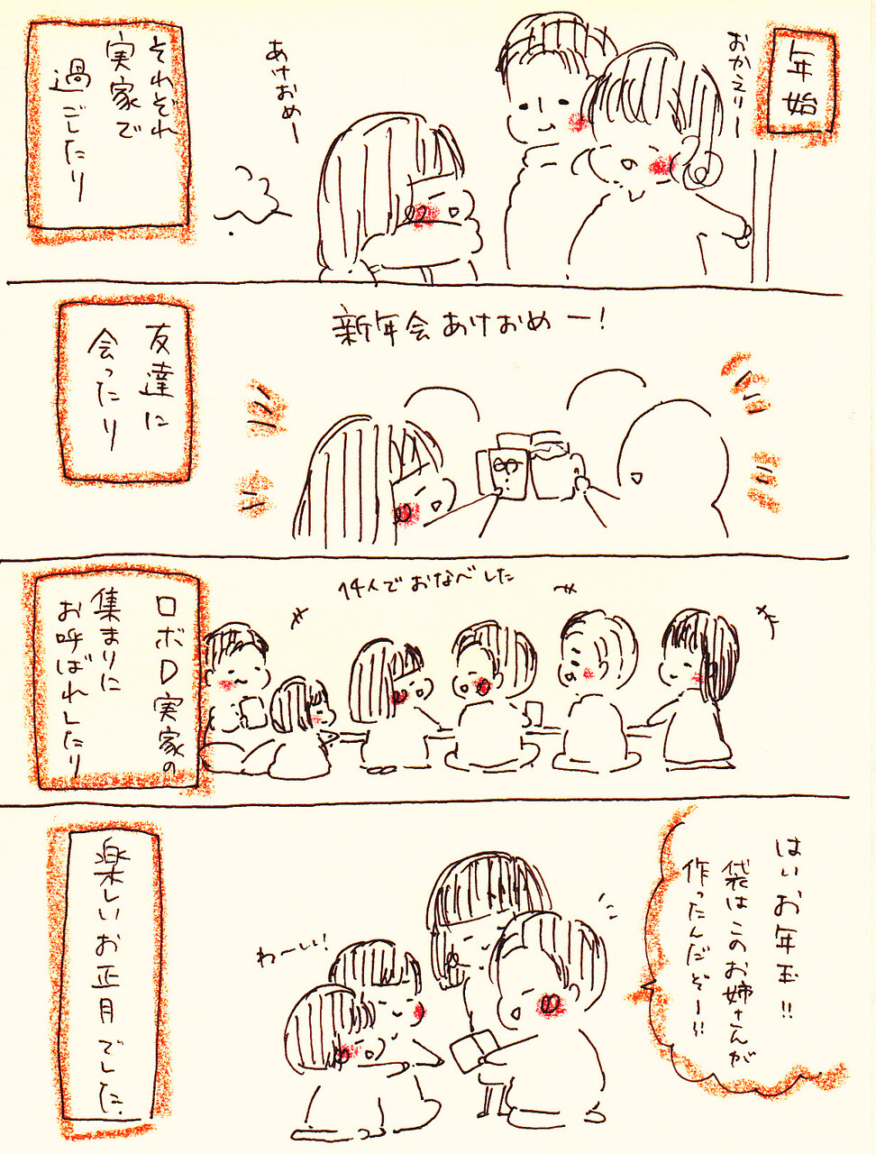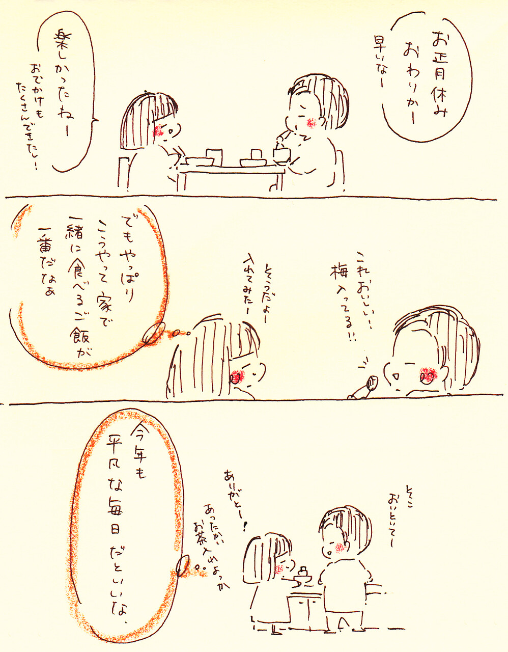 年末年始いろいろイベント事があったから何をメインに描こうかなあと思っていたけど、残しておきたいなと思った気持ちは、日常の愛おしさでした。