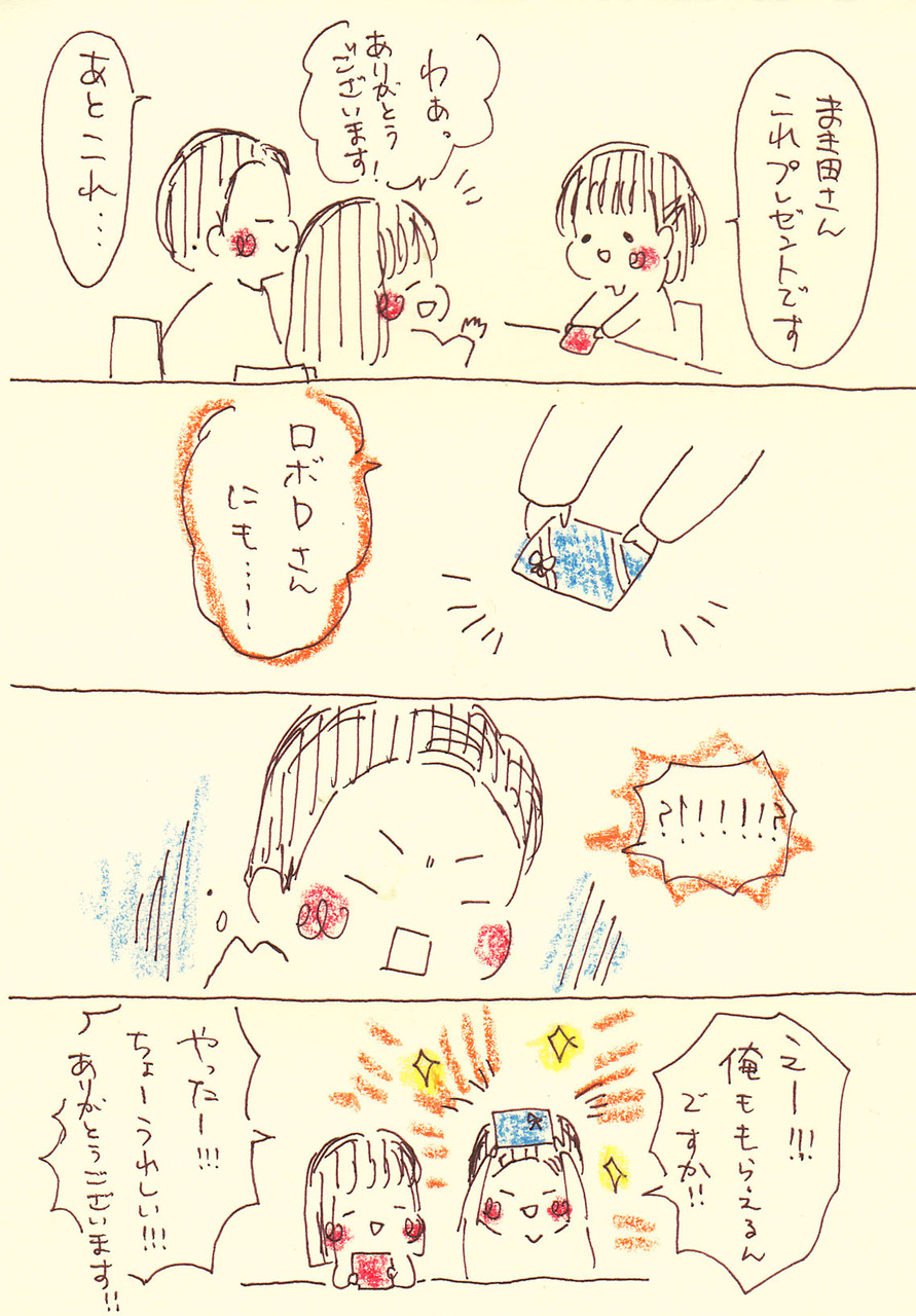 クローズイベント2日目は一緒にいてくれて、ロボD宛にプレゼントもらったりしてました。