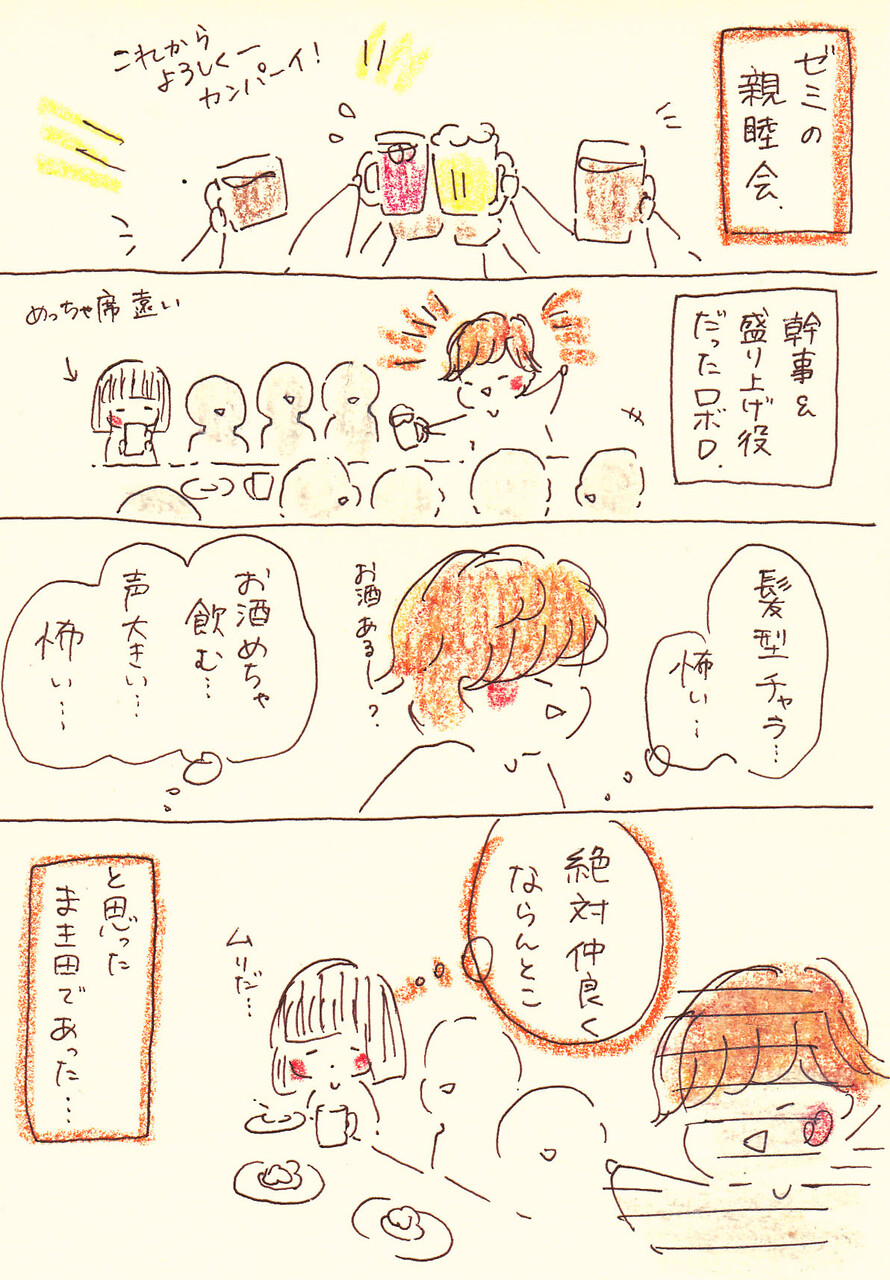 飲み会も食事会みたいなのしか経験なかったし、とにかくロボDがめっちゃ怖かった!!!笑